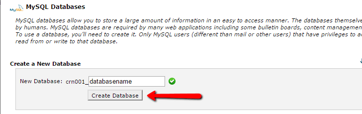 You should see an option to Create a New Database. Enter a name for your database and click Create Database: