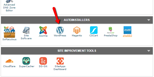 To get started, find the link to the WordPress autoinstaller in cPanel and give it a click: